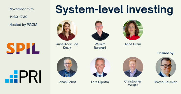 Vervolgens vindt er een paneldiscussie plaatsvinden met Anne Gram (Deense ATP en lid van diverse beleggingscommissies), Anne Kock – de Kreuk (PGB en Pensioenfonds Horeca & Catering), Lars Dijkstra (CIO PGGM) en Christopher Wright (NBIM), over wat er te doen staat voor langetermijnbeleggers. Marcel Jeucken (SustFin en SPIL) zal de middag modereren.